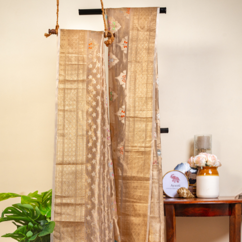 At Ayanti, we believe every saree is more than a garment — it’s a legacy woven with artistry, emotion, and timeless beauty. Born from a passion to preserve India’s handloom traditions, Ayanti brings together master weavers, designers, and modern sensibilities to create sarees that transcend trends. Each piece is a story — of skilled hands, natural fabrics, and the enduring grace of Indian craftsmanship.