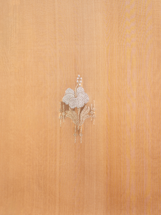 A handwoven pure silk saree in soothing shades of mocha that blend seamlessly in an ombré gradient. Adorned with subtle golden and silver zari flower motifs and a delicate border, this saree carries an understated charm — graceful, effortless, and timeless.
