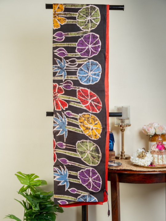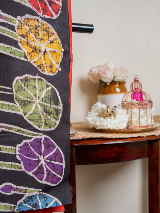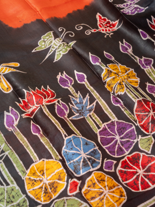 Technique: Pure Silk Batik Handwork (Floral and Butterfly Motifs) from West Bengal