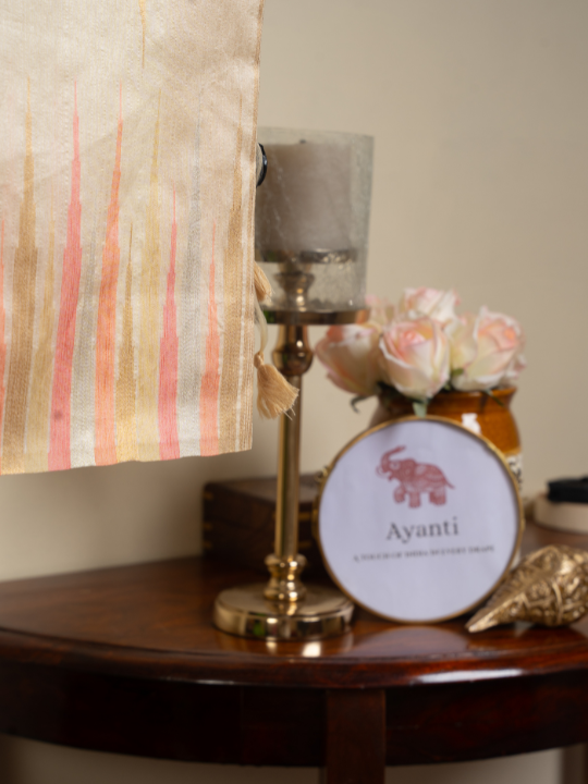Color: Golden Beige with Blush and Peach Stripes